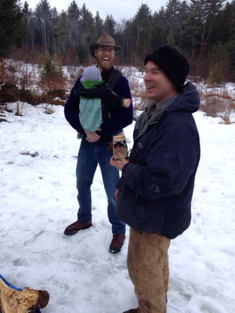 (zmr wearing zman and a friend who graciously allowed us to boil down our sap with him)