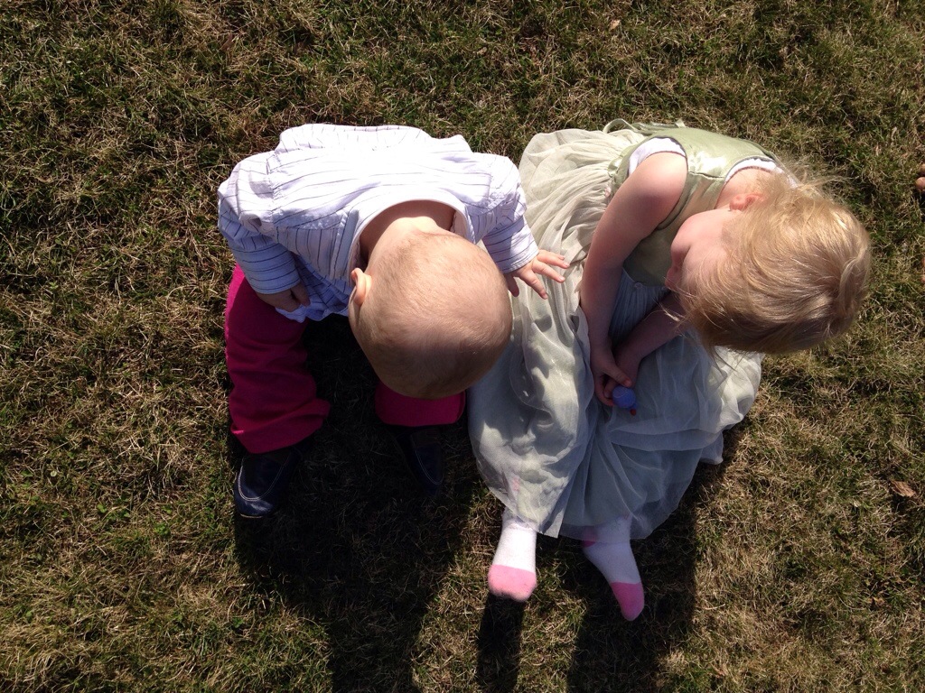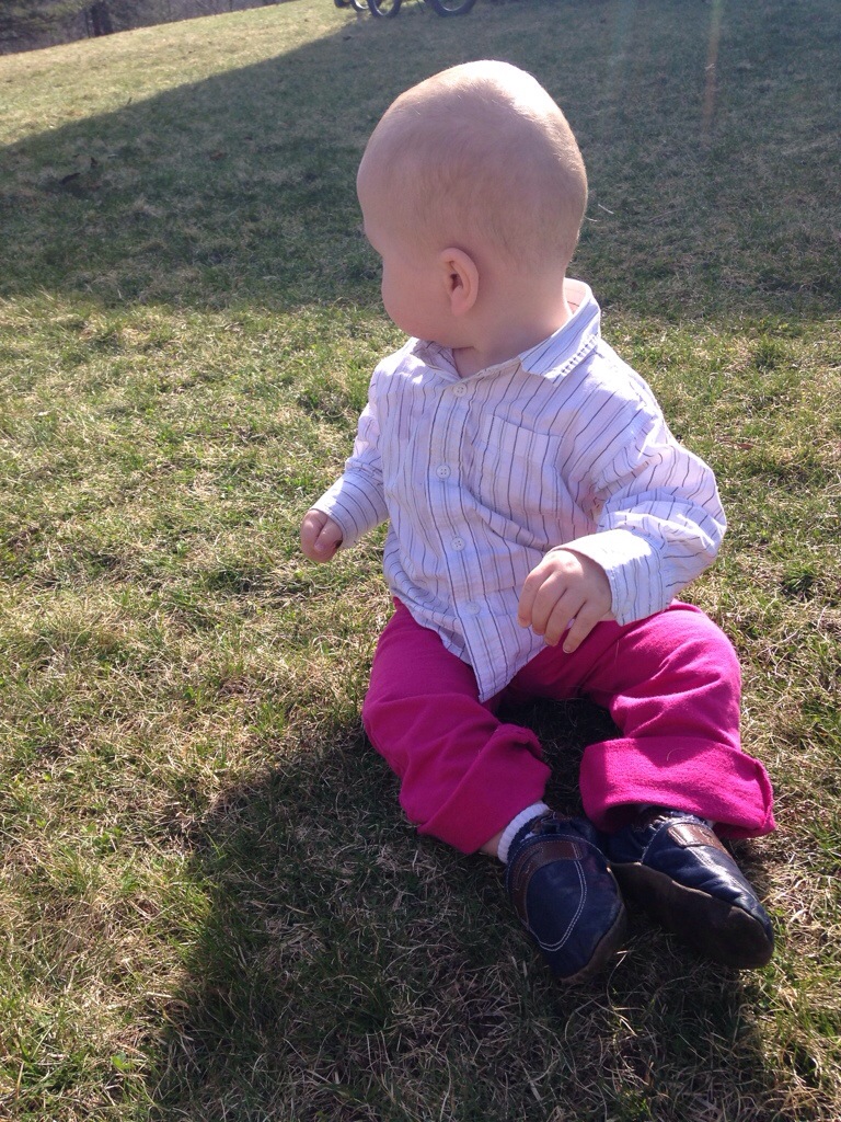Poor little zman. There was a nice Easter outfit. There was spit up. There was a last minute change before heading out the door to church. Not long after our arrival, there was a major diaper blow out and no change of clothes for zman to be found in the diaper bag. There was, however, an extra outfit for zgirl. Thus, zman’s first Easter is officially the Easter of the Pink Yoga Pants.