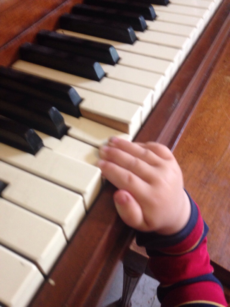 Zman is studying to be a concert pianist in his spare time. Being an infant, spare time means whenever he is not occupied by the following activities: being strapped in the car seat on yet another errand with zmom, sleeping, eating, chewing on something, destroying his brothers’ Lego creations, chewing on or eating his brothers’ Lego creations, or opening up and getting into anything he can reach and spreading it’s contents from one end of our home to the other. When he is not previously engaged by any of the above then zman crawls over to the piano, pulls himself up to the the tune of a cling-clang-bong, and proceeds to bang away. Of course, it doesn’t sound “pleasant” per se, but Mozart had to start somewhere right? And oh the smile! He is so proud. My little big zman. There never was a more jolly maestro.