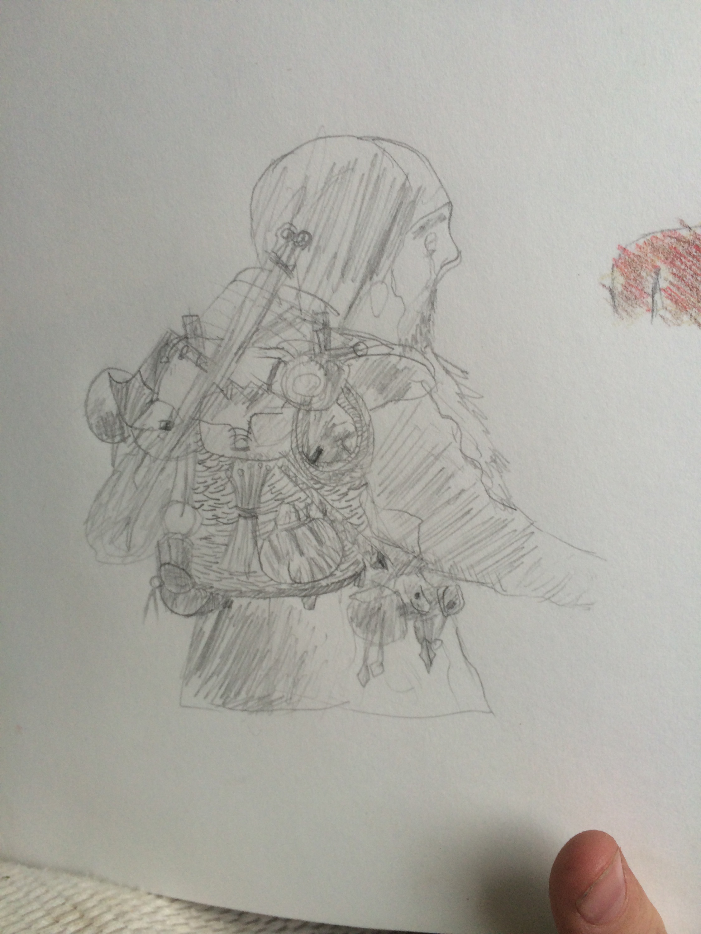 At home the next day, zfirstborn began to draw, as he does everyday. But what he put on the page that day blew me away. He looked at a sketch of a dwarf in a book about the making of the Hobbit. Below is his version.